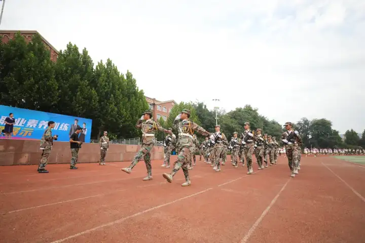 9月12日,青岛北方航空职业学校2025 年“职场启梦”新生军事暨职业素养训练成果展示汇报表演精彩举行,来自五湖四海的新生们,以饱满的热情、昂扬的斗志和崭新的面貌展示了他们在职场启梦训练中取得的丰硕军事训练成果。