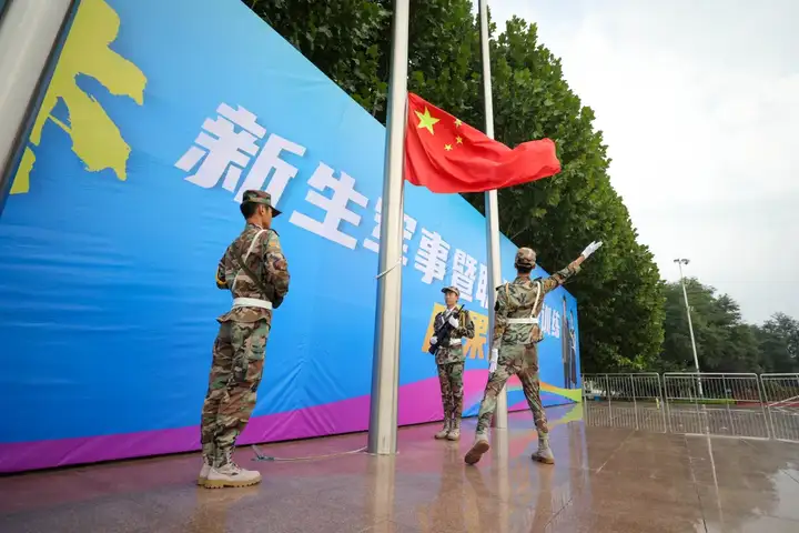曲目源自经典,传递的是快意江湖的豪迈与洒脱,而今日场上的少年们,则以迷彩为袍、以斗志为剑,在军训的“江湖”中淬炼成长。他们将用铿锵的动作诠释“千淘万漉虽辛苦,吹尽狂沙始到金”的坚韧,用飞扬的神采书写“少年负壮气,奋烈自有时”的昂扬。