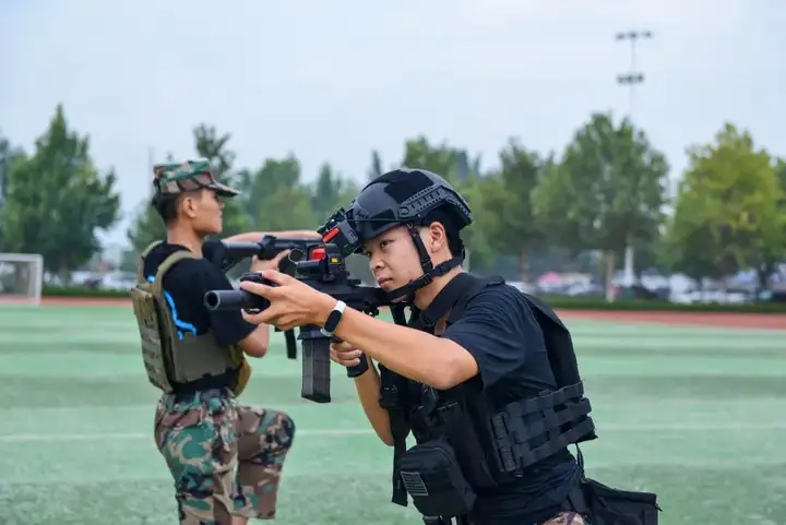 无人机集群如猎鹰展翅,以科技之眼俯瞰战场,拉开序幕。战术分队随即突击,穿插破袭,行动迅猛,展现雷霆之势。格斗对抗杀声震天,拳脚生风,尽显单兵血性胆魄。擒敌术表演一招制敌,刚劲利落,彰显智慧与勇气的融合。整个表演雄浑激昂,深刻诠释了“止戈为武”的崇高内涵。